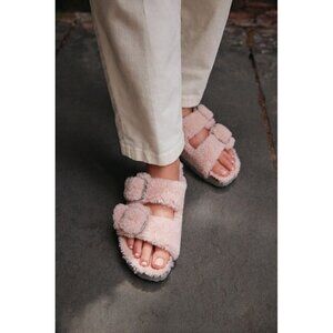 BIRKENSTOCK Arizona Big Buckle Genuine Shearling Slide Sandal in Crystal Rose