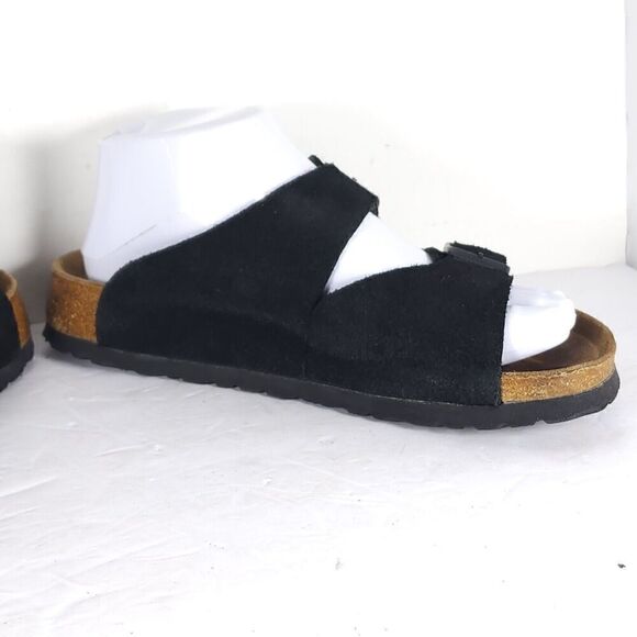 BIRKENSTOCK Women's Arizona US6 EU37 Black Suede 2 Straps Slide Sandals