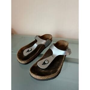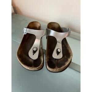 BIRKENSTOCK GIZEH SILVER METALLIC BIRKO FLOR SANDALS THONGS 40 WOMEN 9 leather