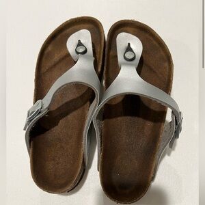 BIRKENSTOCK Gizeh Birko-Flor Metallic Silver Sandals Shoes Women's Sz 8