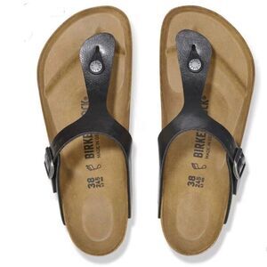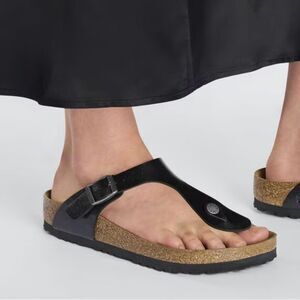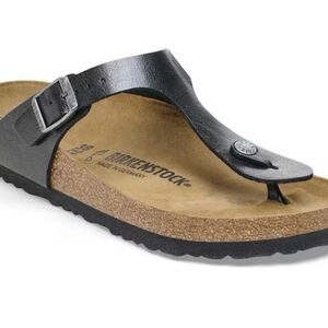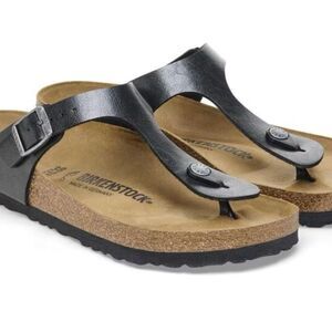 The BIRKENSTOCK Gizeh is a genuine classic and a stylish all-rounder. Our elegant thong sandal combines optimum grip with minimalist, fashionable design. Here, we see the sandal with a silky sheen finish. The upper is made from the skin-friendly, hard-wearing synthetic material Birko-Flor®.