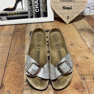 BIRKENSTOCK Madrid Big Buckle Sandals Silver Narrow Size 40 US 9 Distressed