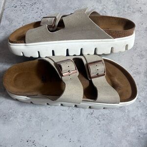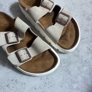 BIRKENSTOCK Papillio Arizona Chunky Cream Suede Slip On Sandals