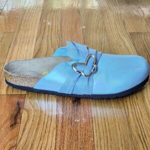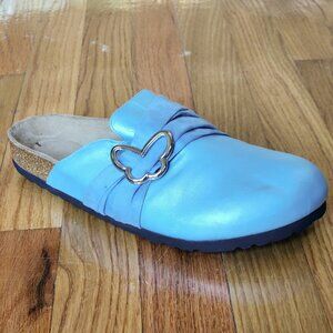 BIRKENSTOCK TATAMI Blue Leather Mule Clog Comfort Shoes Butterfly