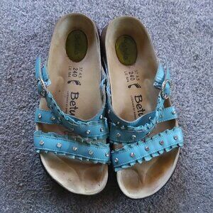Birkenstock Betula turquoise color with ruffle & rhinestones comfort gel heel all genuine leather insoles only worn 2 times. Size 37 or 7