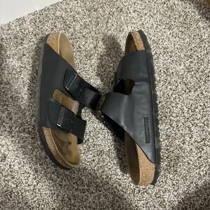 BIRKENSTOCK Unisex Arizona Sandals Size L7/M5 In Natural Leather Oiled Black