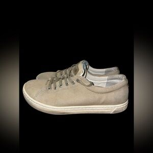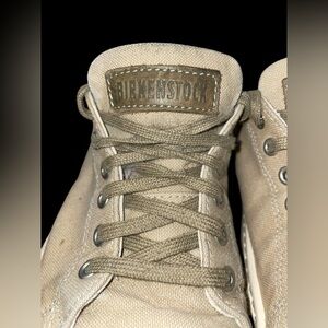USED BIRKENSTOCK WOMEN'S ARRAN SIZE 38 ( 7.5 Womens US ) IN KHAKI CANVAS. HAVE SOME DEFECTS AND MARKS WHICH THERE ARE PICTURES OF. IN FAIR CONDITION FROM A SMOKE FREE HOME