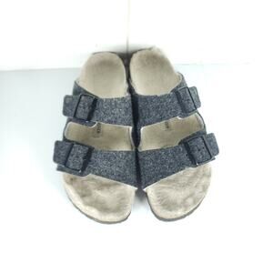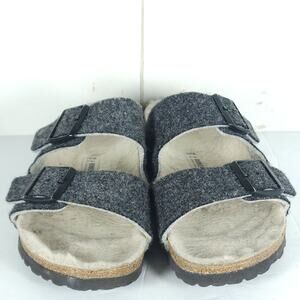 BIRKENSTOCK Women's Arizona Rivet EU39 US8 Narrow fit Gray Wool Flat Slide Sandals Shoes . Very Good pre-owned condition with sign of wear . Sign of wear on the insoles. please examine all the pictures for condition details before purchasing.