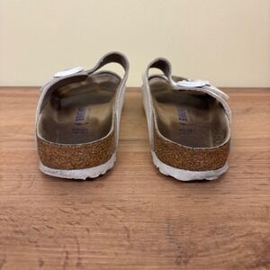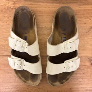 Keywords: Birkenstock sandals, Arizona, White sandals, Leather sandals, Women's sandals, Size 40, EU size 40, Made in Germany, Casual sandals, Comfortable sandals, Slip on sandals, Summer shoes, Slides