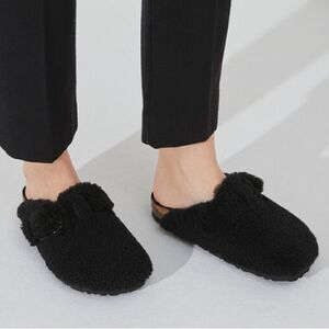 An evolution in the classic Boston clog. Here, Papillio presents the clog with a trendy platform sole. The bevel results in maximum walking comfort. This version features warm, genuine shearling padding in a Teddy style and a big, elegant pin buckle to round off this bold, but super cozy look. The upper is made from Teddy style genuine shearling with a microfiber lining.