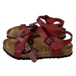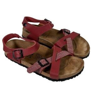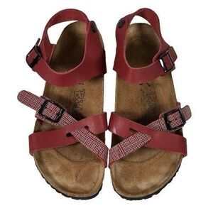 BIRKI'S Lillie Criss Cross Burgundy Plaid Sandals Women's US Size 8 EU 39 Original Birkenstock. Excellent preowned condition. No rips, cuts, or holes. Cleaned and sanitized. Please see pictures.