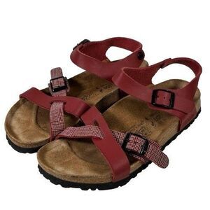 BIRKI'S Lillie Criss Cross Maroon/Crimson Sandals Women's US 8 EU 39 BIRKENSTOCK