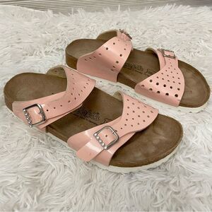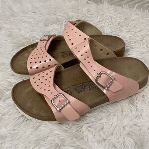 BIRKIS by Birkenstock Freeport Patent Perforated Light Pink Slip on Sandals sz 5