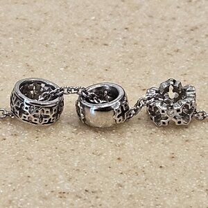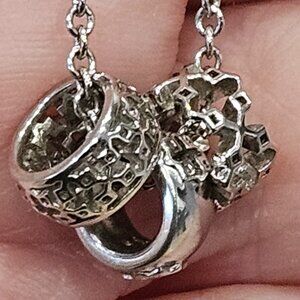 BIRKS MAYORS 925 SILVER 3 RING MUSE CLOVER QUATREFOIL PIERCED NECKLACE CHAIN