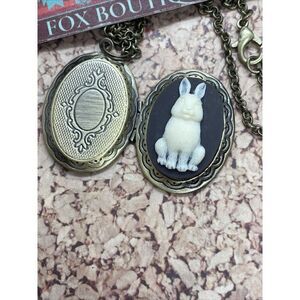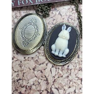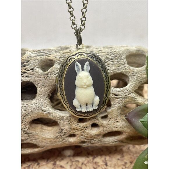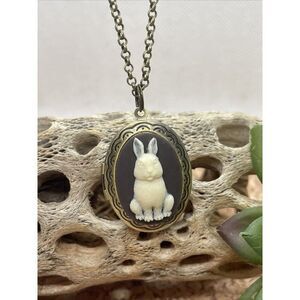 •BUNNY RABBIT Locket Necklace JEWELRY Pendant PHOTO bronze Picture CAMEO memory