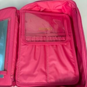 A glam collab between BÉIS and Barbie™ 💖 This limited-edition hot pink cosmetic case is perfect for travel or vanity organization, featuring a removable mirror, separate brush pouch, and wipeable lining.