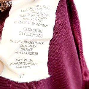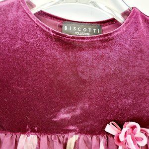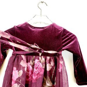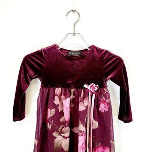 BISCOTTI Girls Wine Red Purple Floral Velvet Holiday Party Dress 3T Ribbon