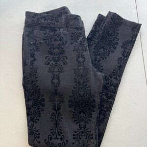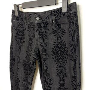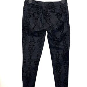 BISOU BISOU Black Velvet Inlay Design Slim Pants, Chic Classy, Women's Size 6