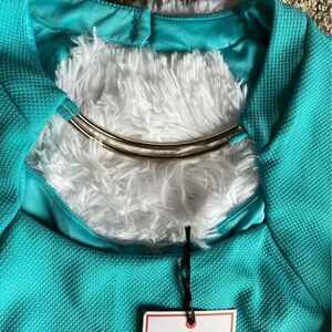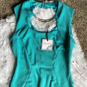 BISOU BISOU Dress Aqua Gold Hardware Midi Bodycon Fitting NEW Women’s Size 6