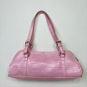 BISOU BISOU Pink Faux Croc Leather East West Baguette Y2K Shoulder Purse Bag