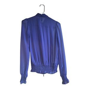 BISOU BISOU Sheer Purple Ruffle Front Full Zip High Neck Blouse Size XS