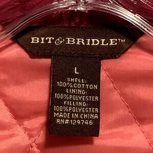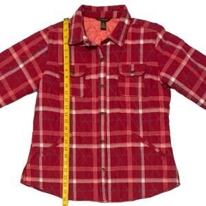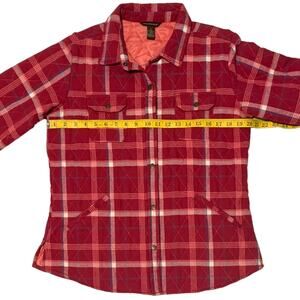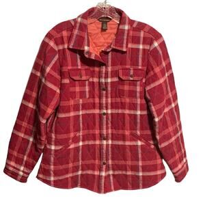 Women's BIT & BRIDLE size L Quilted Shirt Jacket with Snap Chest Pockets in Plaid Flannel. Good pre-owned condition.