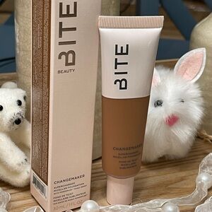 Brand New..For Tan Skin tones with yellow, strong, yellow under tones, Medium-Medium Deep, make the change to clean and high-performance. Bite Beauty T135 is described by the brand as "tan with warm peach undertone." It is a shade in the Changemaker Supercharged Micellar Foundation range, which is a liquid foundation with a natural finish and medium coverage that retails for $39.50 and contains 1 oz.