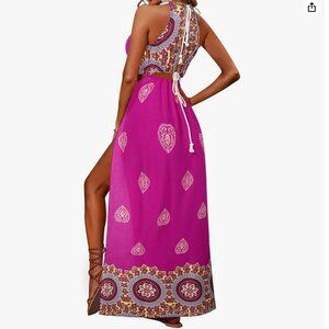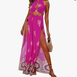 BIUBIU Women's Sexy Boho Floral Halter Summer Maxi Dress Beach Party Split Cover