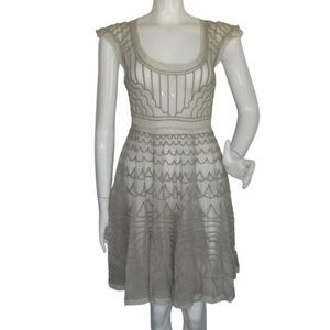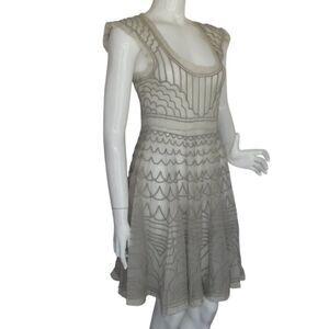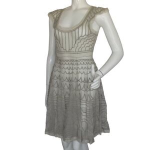 BIYA/Johnny Was Dress, S, Beige/Nude Mesh, Embroidered, SHEER, Cap shoulder