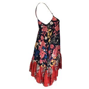 Description: Biyan Black / Red Multi Floral Printed Silk Top.