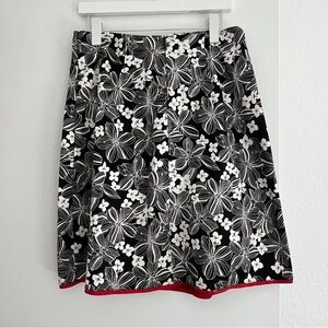B.I.Y.A.Y.C.D.A Black & White Floral Print Skirt Red Trim Medium