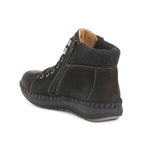 smooth finish, whipstitch details, contrast stitching, traction outsole, silver tone hardware, shearling cuff, size chart conversion may vary slightly by country