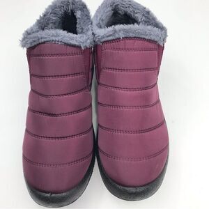 BJ Burgundy Quilted Faux Fur Lined Soft Sole Flat Ankle Slipper Shoes
