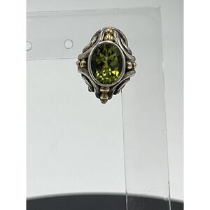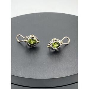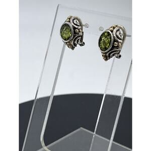 BJC Samuel Benham Sterling Silver Sign 14k Gold Oval Peridot Stud Omega Earrings