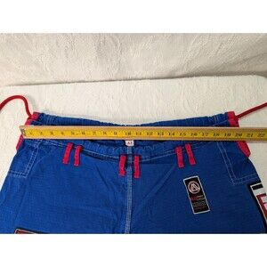 BJJ COACH ASSOCIATION OFFICIAL COMPETITION/TRAINING Gi UNIFORM adult size A3. blue, red, and white colorway, branding is embroidered and patched throughout, comes with matching top and bottom, very sturdy, pants are designed to move with you, adjustable drawstring waistband, stains as pictured, and in great used condition.