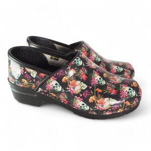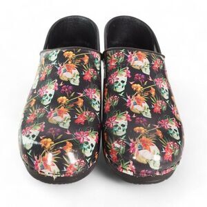 BJORK Professional Moa Skull Print Leather Clogs Multicolor Women's 7-7.5/38