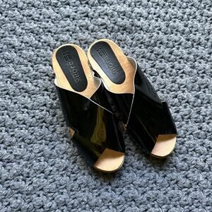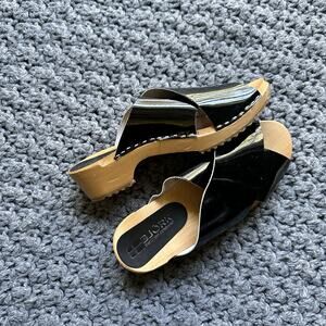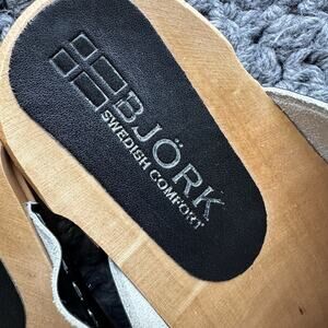 BJORK RIKKE Swedish Wooden Slides 10 Eu 41 Crisscross Black Leather Clogs Shoes