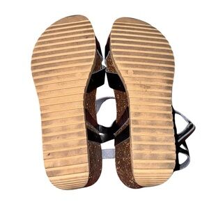BJORNDAL Kori Black Crisscross Cork Sole Strappy Wedge Sandals Size 10