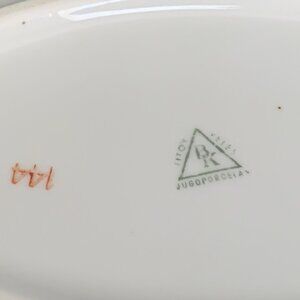 BK Titov Veles Jugo Porcelain Serving Bowl Oval Floral Gold Trim Yugoslavia Chip