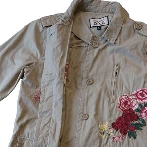BKE 100% Cotton Khaki Floral Embroidered Lightweight Utility Jacket Boho
