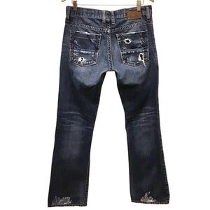 BKE 32L Carter Boot Cut Mens Jeans Distressed 32x32.5 Logo Button Fly