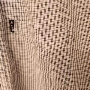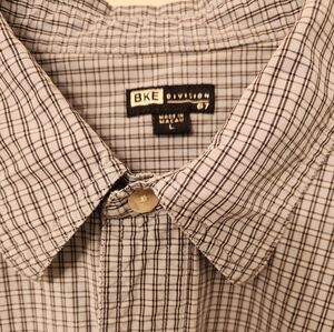 Nice-looking short-sleeve casual button-down by BKE. Size large, made in Macau, 100% cotton.