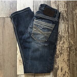BKE Aiden straight heavy stitch whiskered distressed jeans 26 short