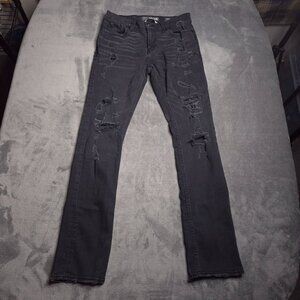 BKE Alec Mens Straight Leg Jeans 30 Black Distressed Holes Stretch