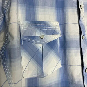 BKE Athletic Mens Snap Shirt Western Cowboy Pockets Blue Plaid Size XL