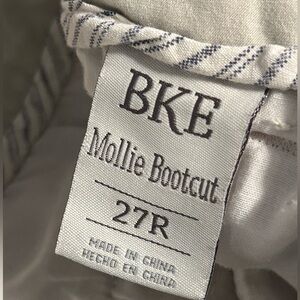 Stylish and timeless BKE bootcut pants in a light khaki/cream shade. Mid-rise with a flattering bootcut leg, perfect for pairing with sandals, boots, or wedges. Casual yet versatile, great for everyday wear or dressing up.