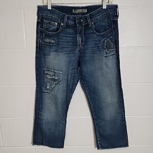 BKE Blue Ankle Cropped Jeans Stretch Raw Hem Mid-Rise