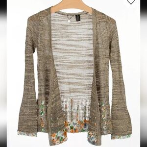 BKE Boutique BUCKLE Open Weave Cardigan Sweater Size Medium Brown Long sleeve