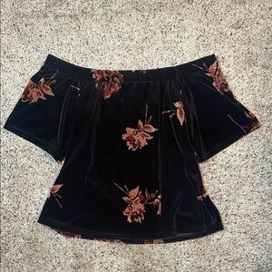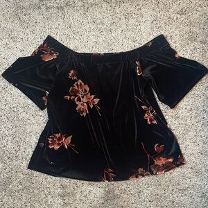 BKE Boutique Black Floral Velvet Off The Shoulder Woman’s Top Size Medium