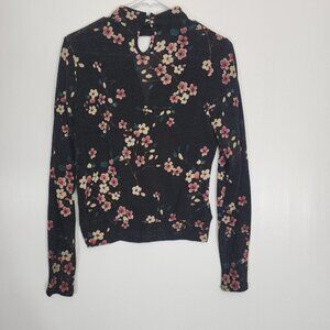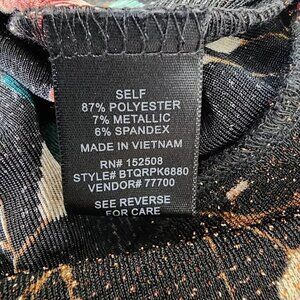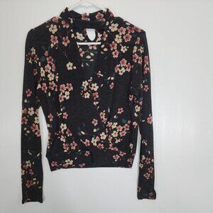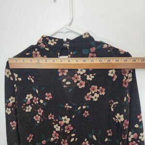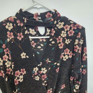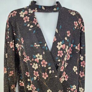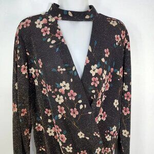 BKE Boutique Buckle Top Blouse Womens Small Black Wrap Floral Choker Metallic